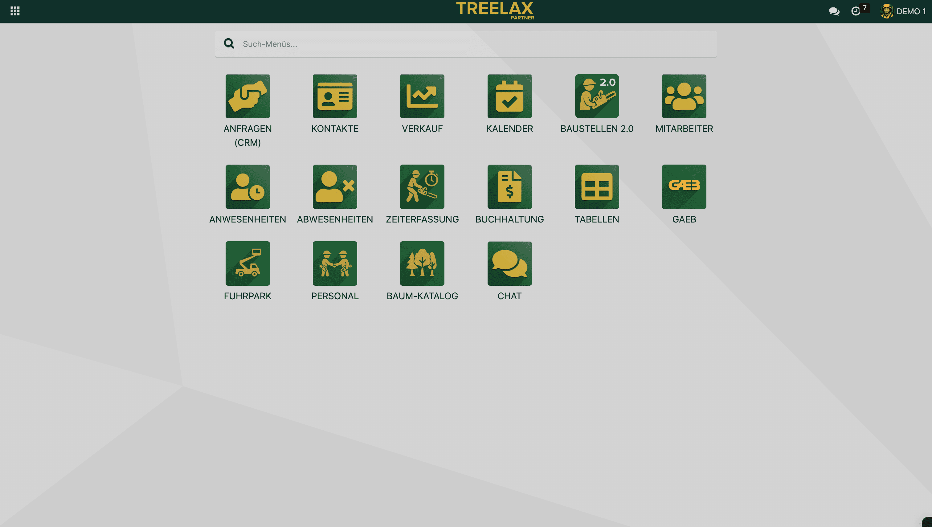 Nach dem Login landest du auf der App-Übersicht – einer Kachelansicht mit allen verfügbaren Apps. Welche Apps du siehst, hängt von deinen Rechten ab. Als Geschäftsführer oder Bürokraft siehst du in der Regel alle.