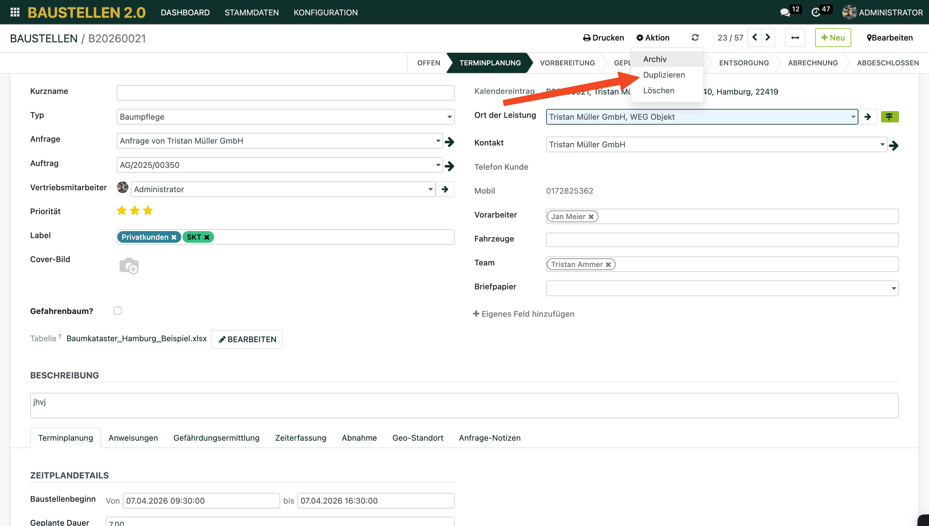 Baustelle duplizieren für Folgeaufträge
