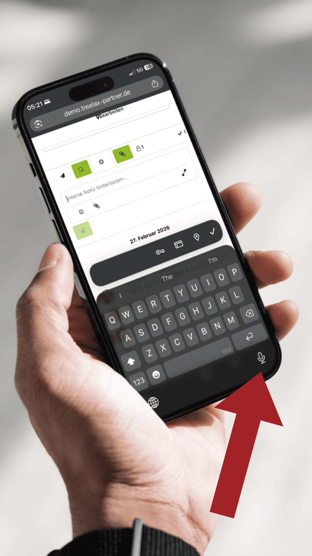 Auf dem Handy sparst du dir das Tippen: Tippe ins Notiz-Feld und nutze das Mikrofon-Symbol auf der Tastatur. Einfach sprechen, fertig.