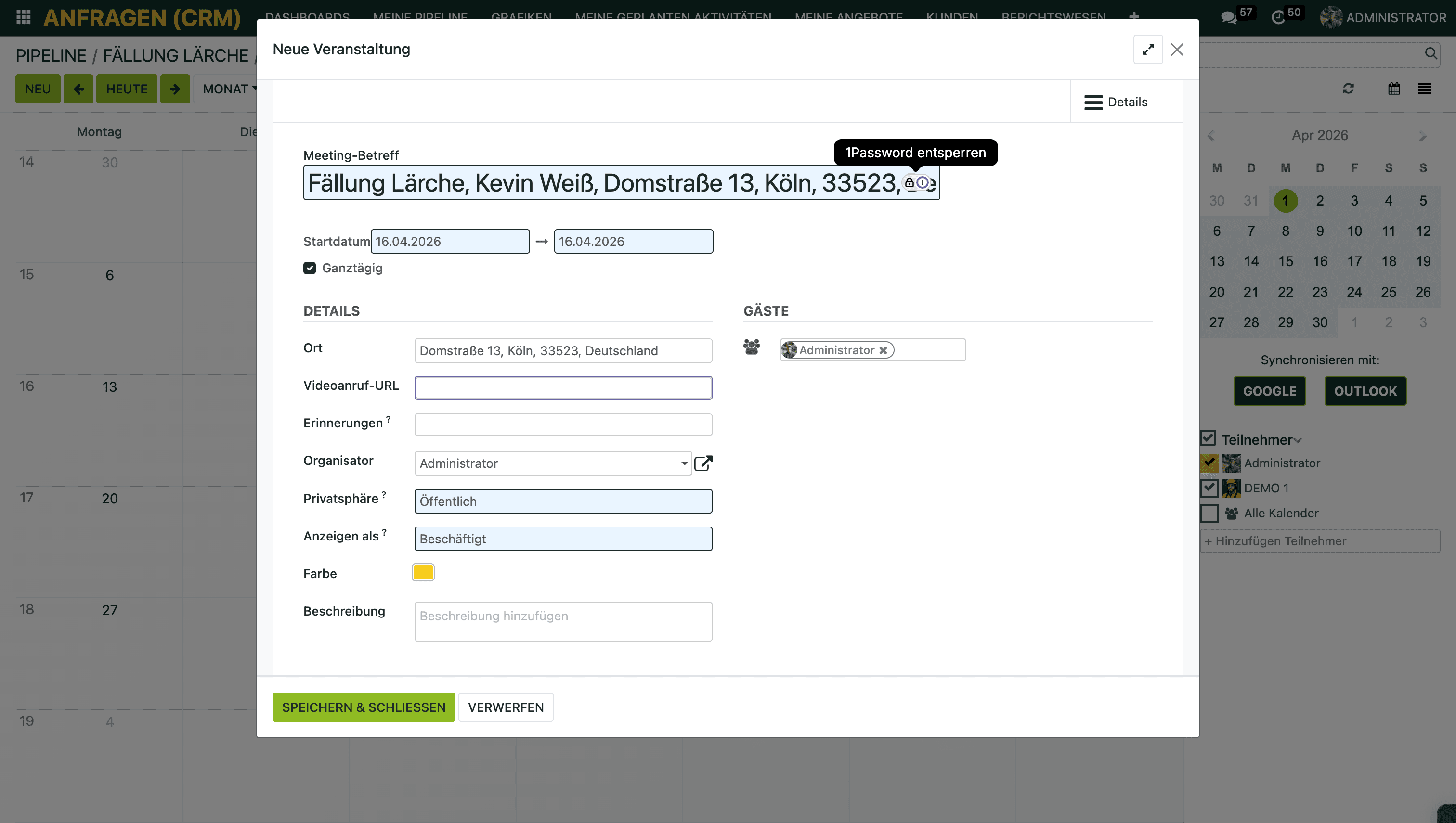 Optional: Trage den Ort ein – dann wird er auch im Kalender angezeigt. In vielen Funktionen füllt sich der Ort automatisch für dich aus.