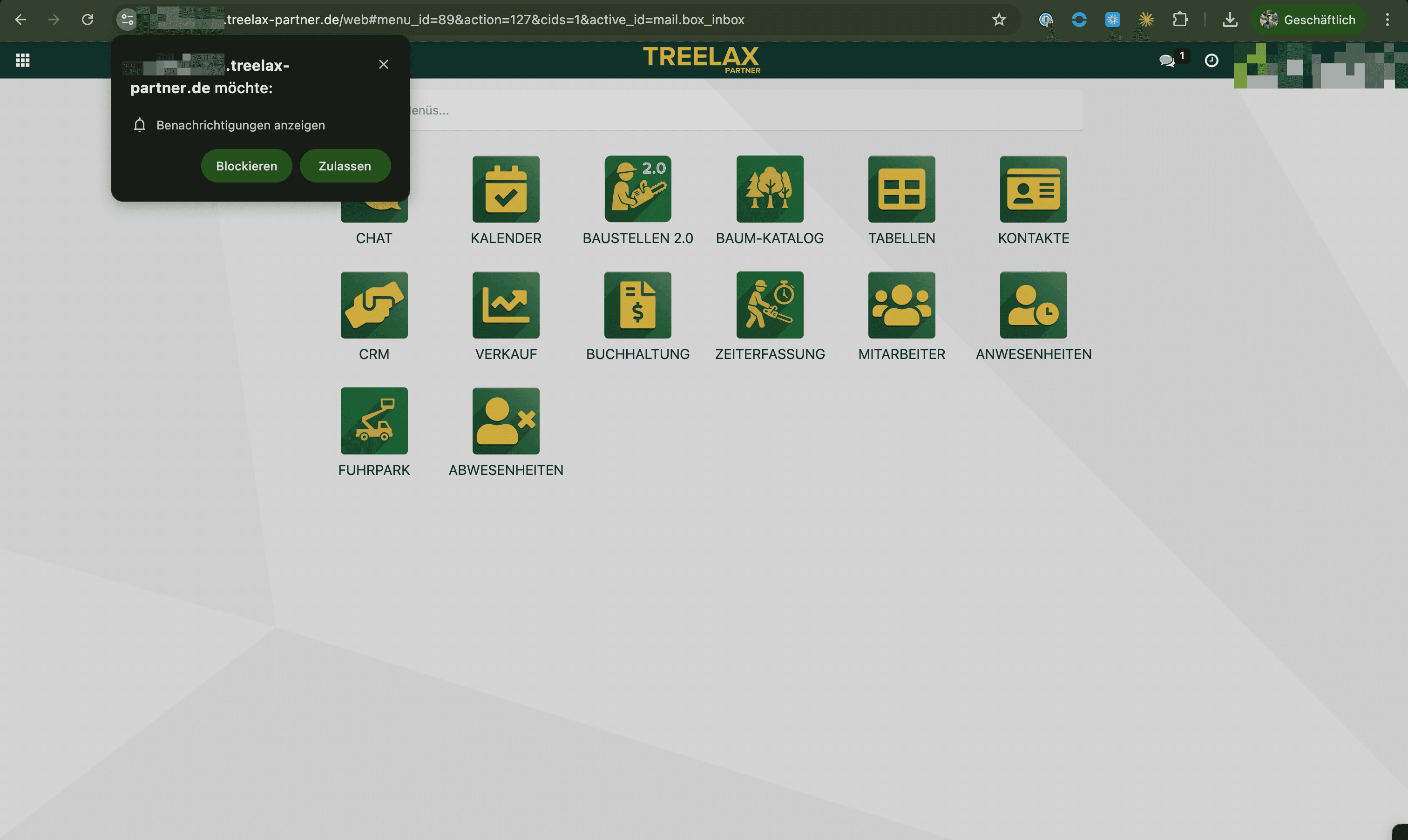 Du aktivierst Desktop-Benachrichtigungen in deinem Browser, damit dich TREELAX Partner direkt auf dem Computer informiert – z.B. wenn eine neue Anfrage reinkommt oder eine Aufgabe fällig ist.