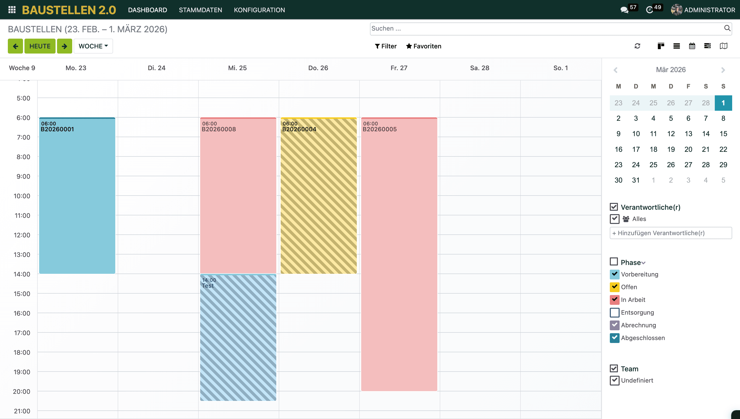 Die Kalenderansicht der Baustellenplanung einfach erklärt