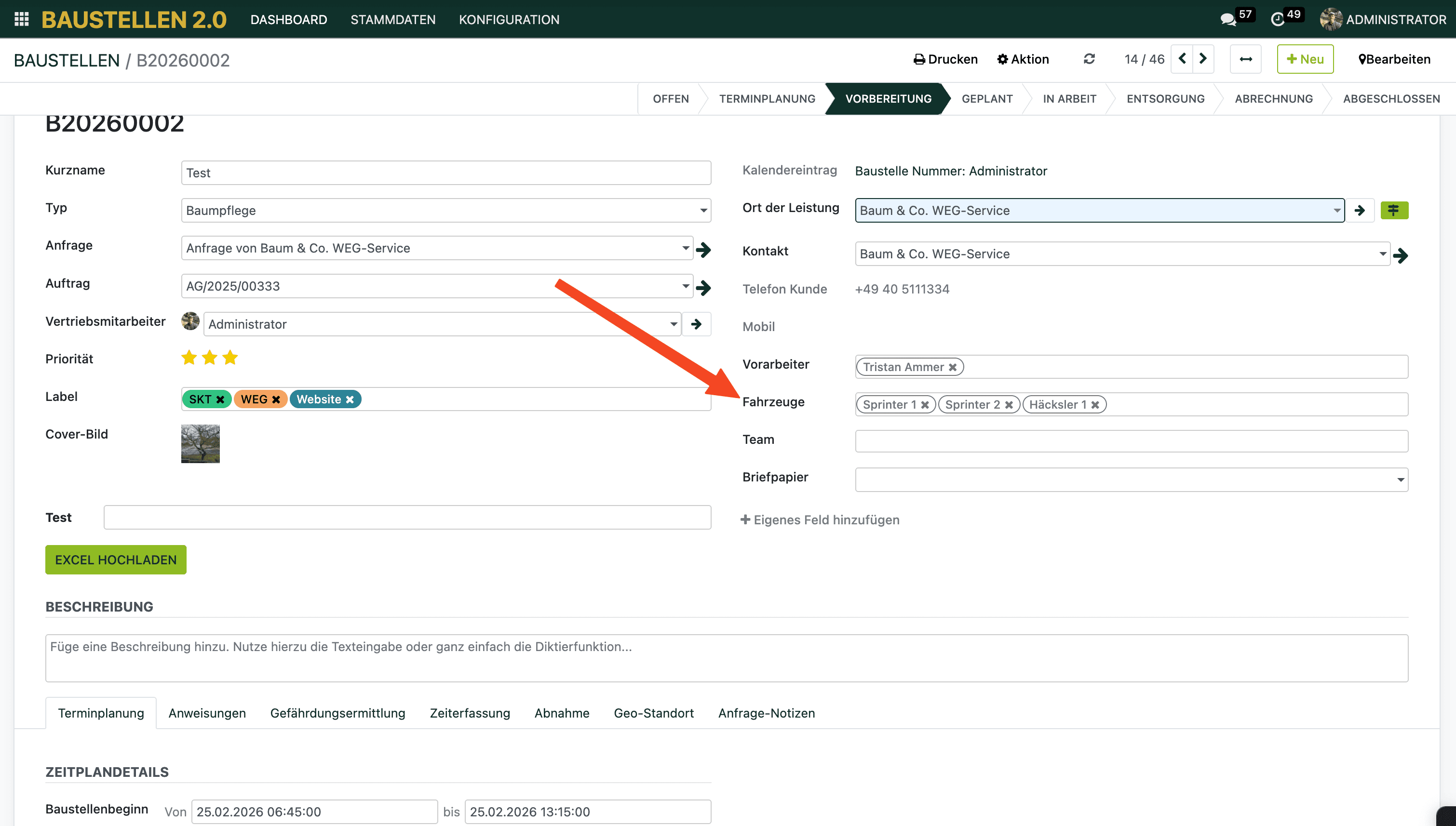Du hast für das Fahrzeug einen Kurznamen vergeben und findest es in der Baustellenplanung unter einem anderen Namen.