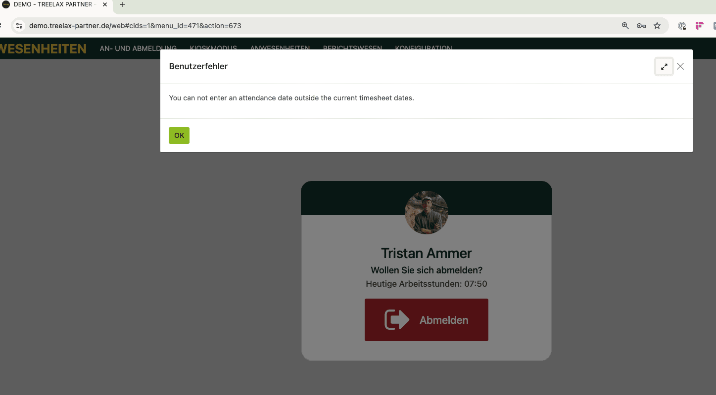 Fehlermeldung: Du kannst keine Anwesenheiten außerhalb des aktuellen Stundenzettel-Zeitraums anlegen (1)