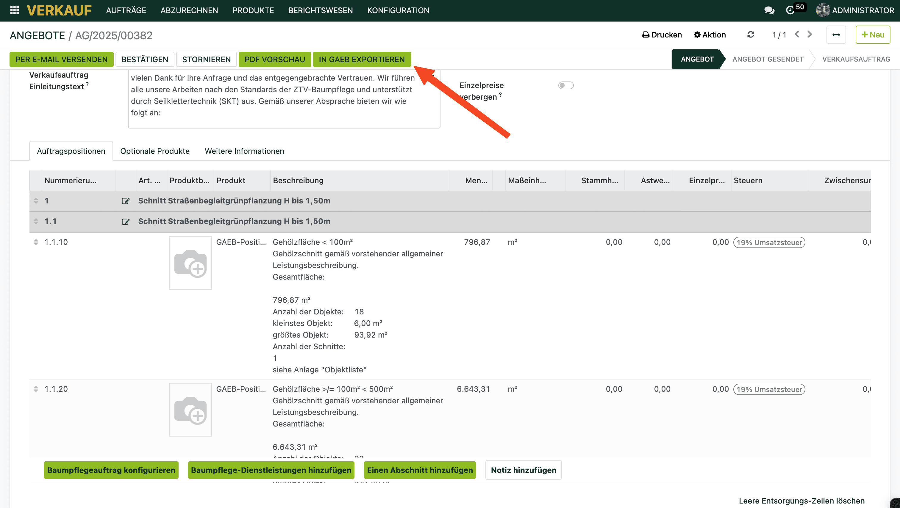 Wenn du einen aus einer GAEB-Ausschreibung gewonnenen Auftrag bestätigst, legt TREELAX Partner automatisch einen Vertrag an – du brauchst dafür keinen extra Schritt. Das passiert direkt bei der Auftragsbestätigung.