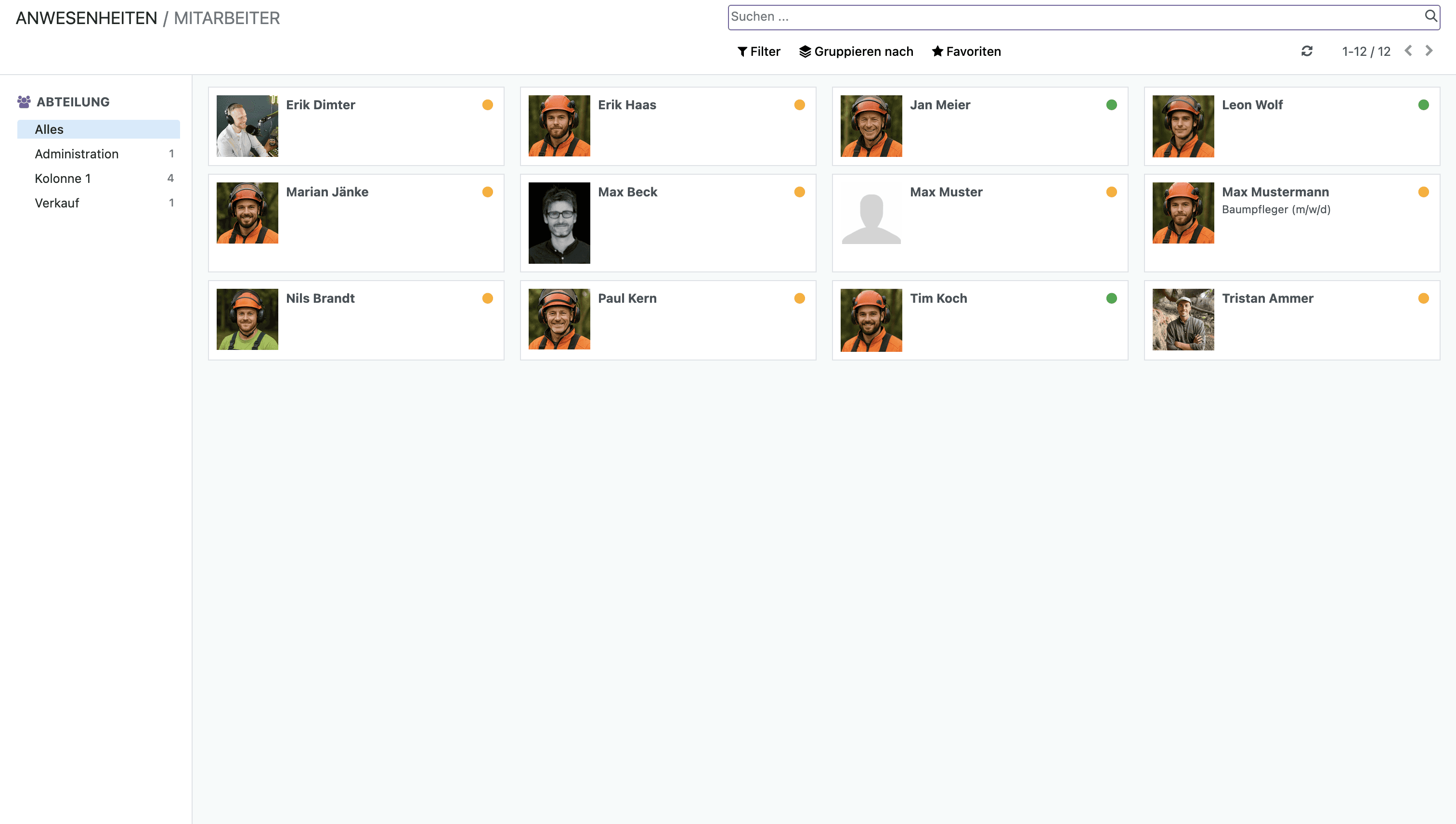 Gehe auf Anwesenheiten