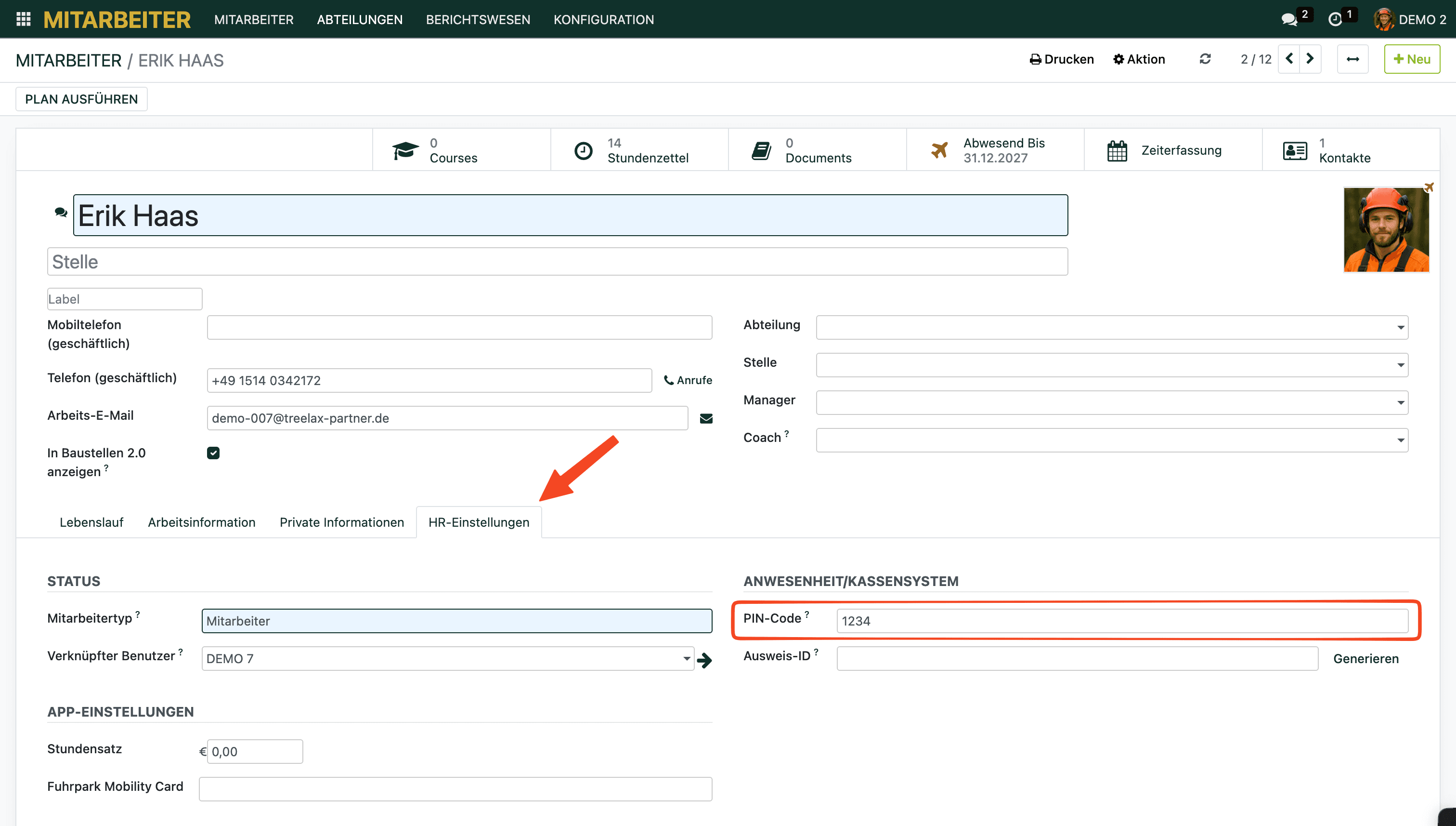 Schritt 1: PIN für jeden Mitarbeiter vergeben