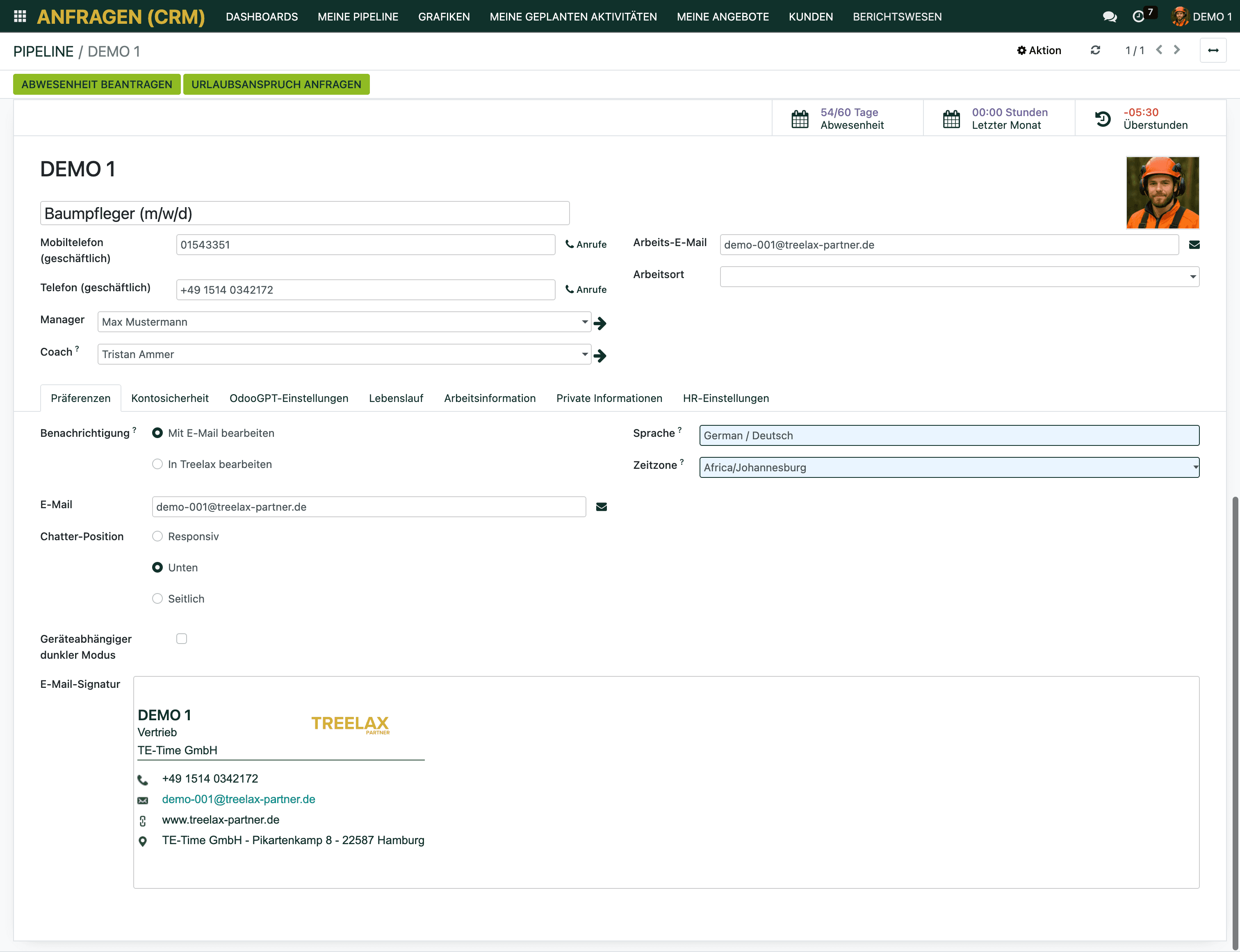 Du pflegst dein persönliches Profil in TREELAX Partner – Signatur, Benachrichtigungen, Zeitzone und weitere persönliche Einstellungen.