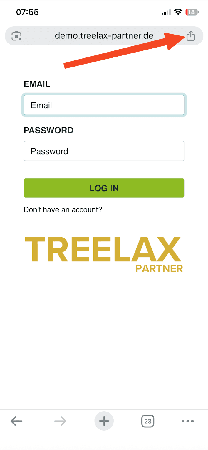 Du richtest TREELAX Partner auf deinem Handy oder Tablet ein und speicherst die Seite als Icon auf deinem Startbildschirm. Das dauert etwa 2 Minuten.