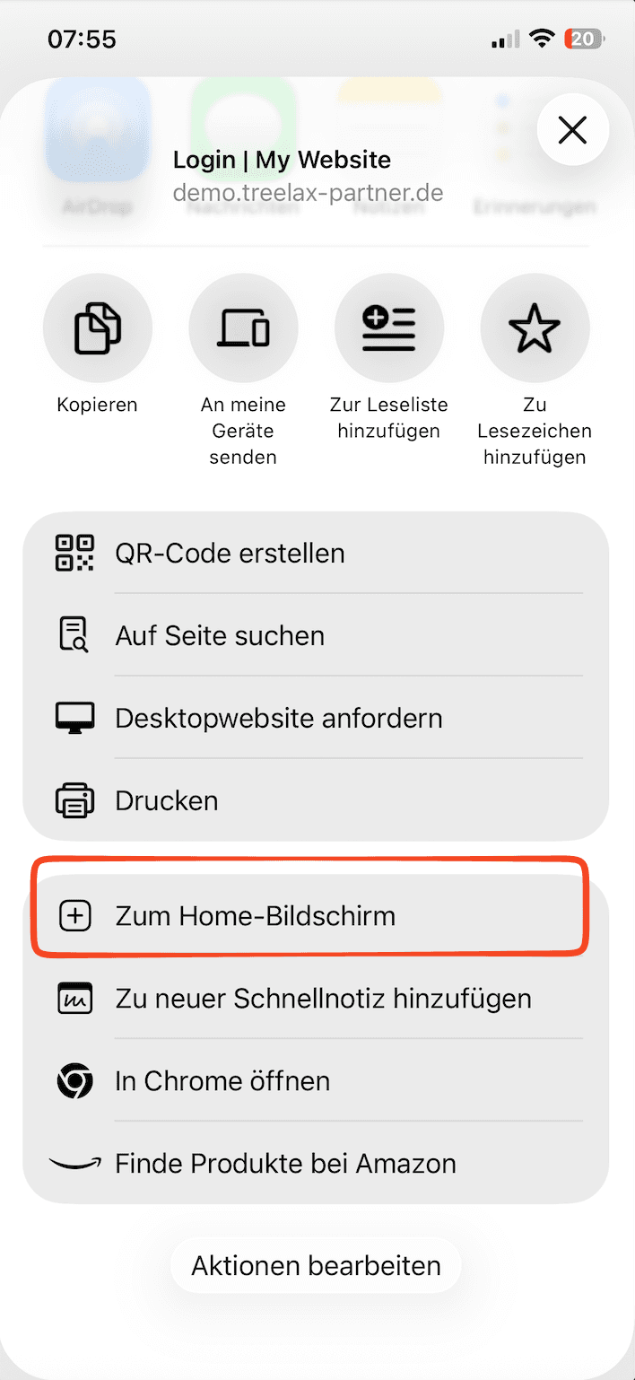 Scrolle im Menü nach unten und tippe auf „Zum Home-Bildschirm"