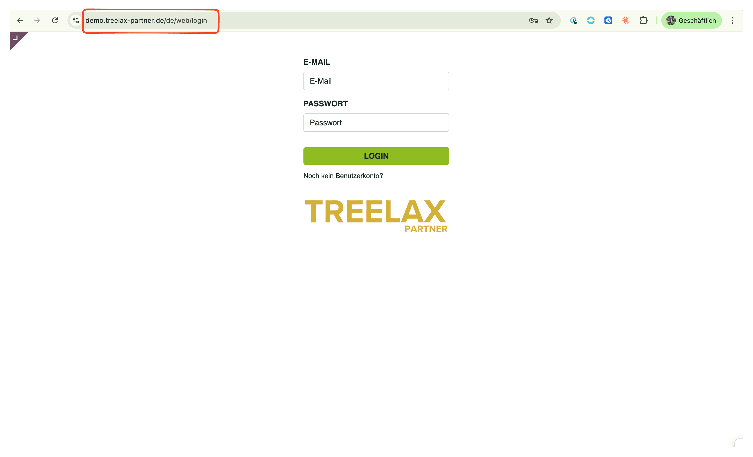 /web/login, z.B.musterbetrieb.treelax-partner.de/web/login
