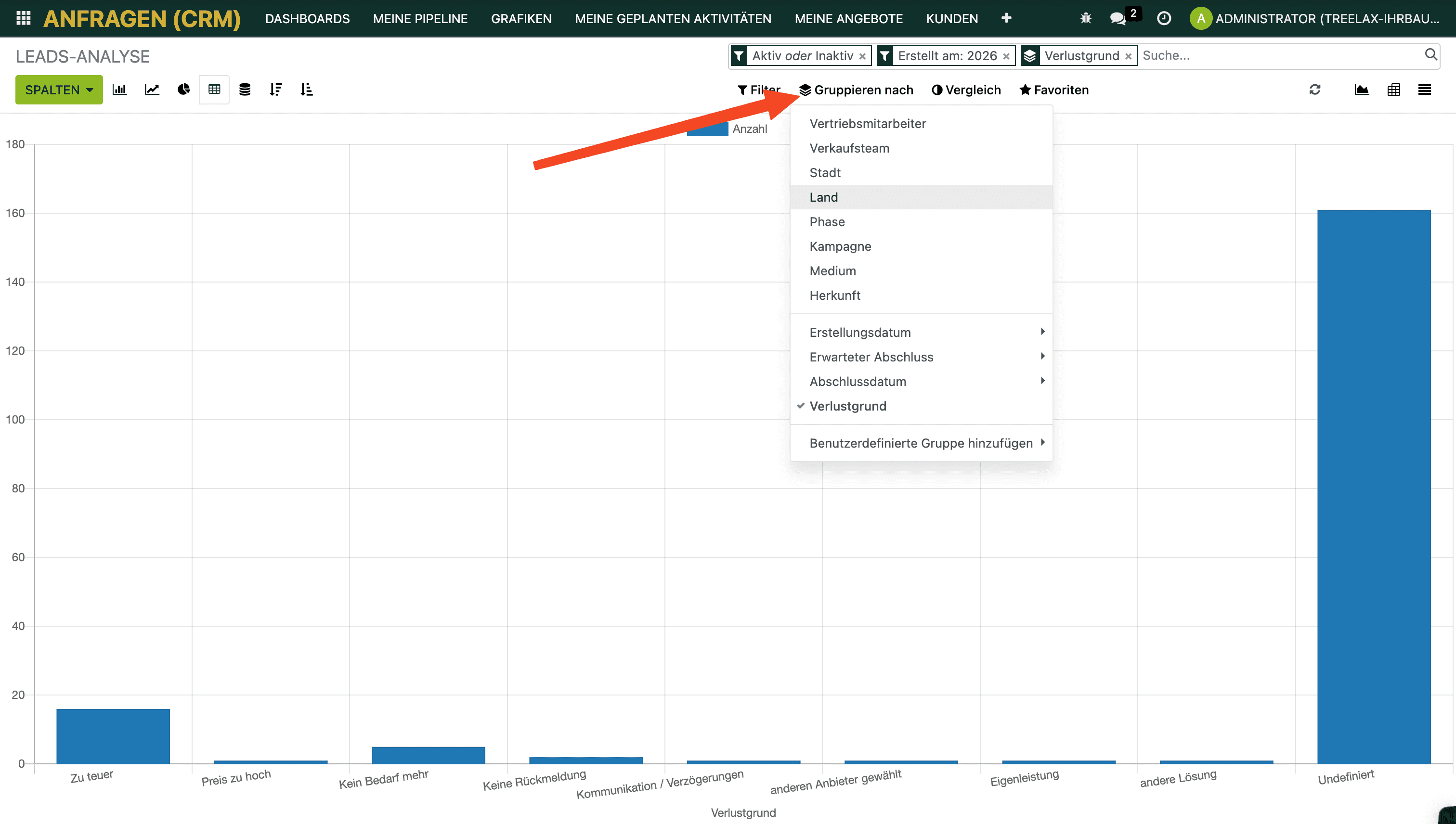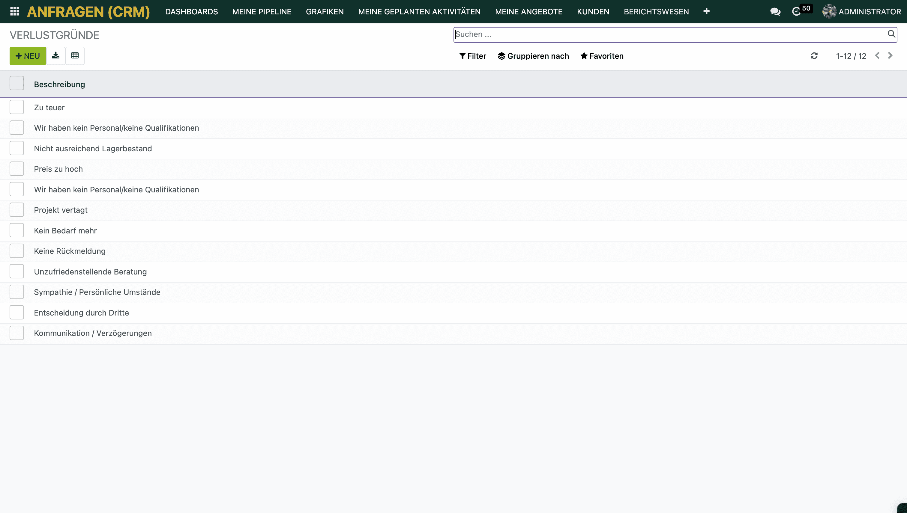Du kannst die Liste der Verlustgründe selbst anpassen – Einträge bearbeiten oder neue hinzufügen: