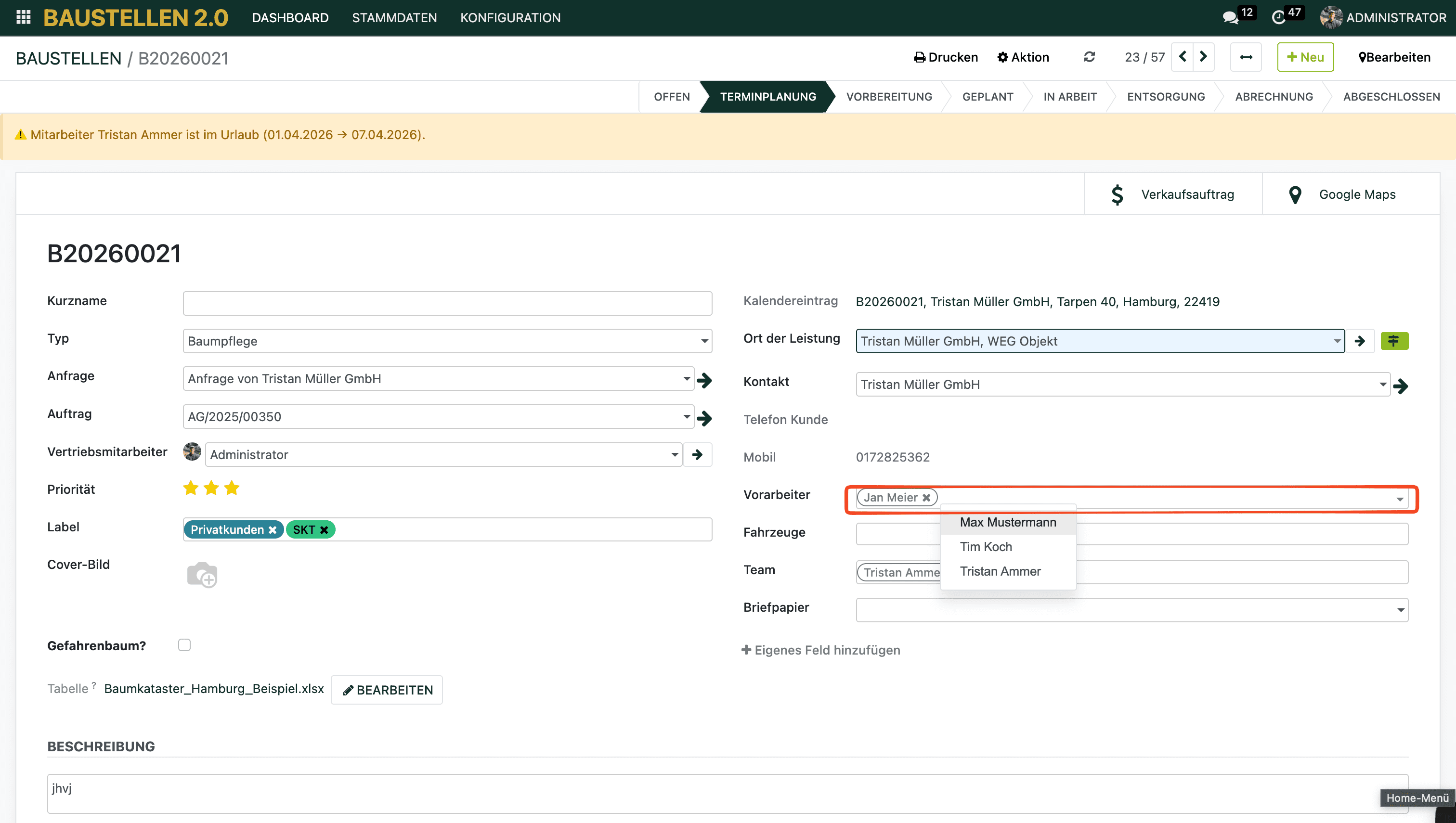 Erscheint die Baustelle im Kalender aller eingeplanten Mitarbeiter