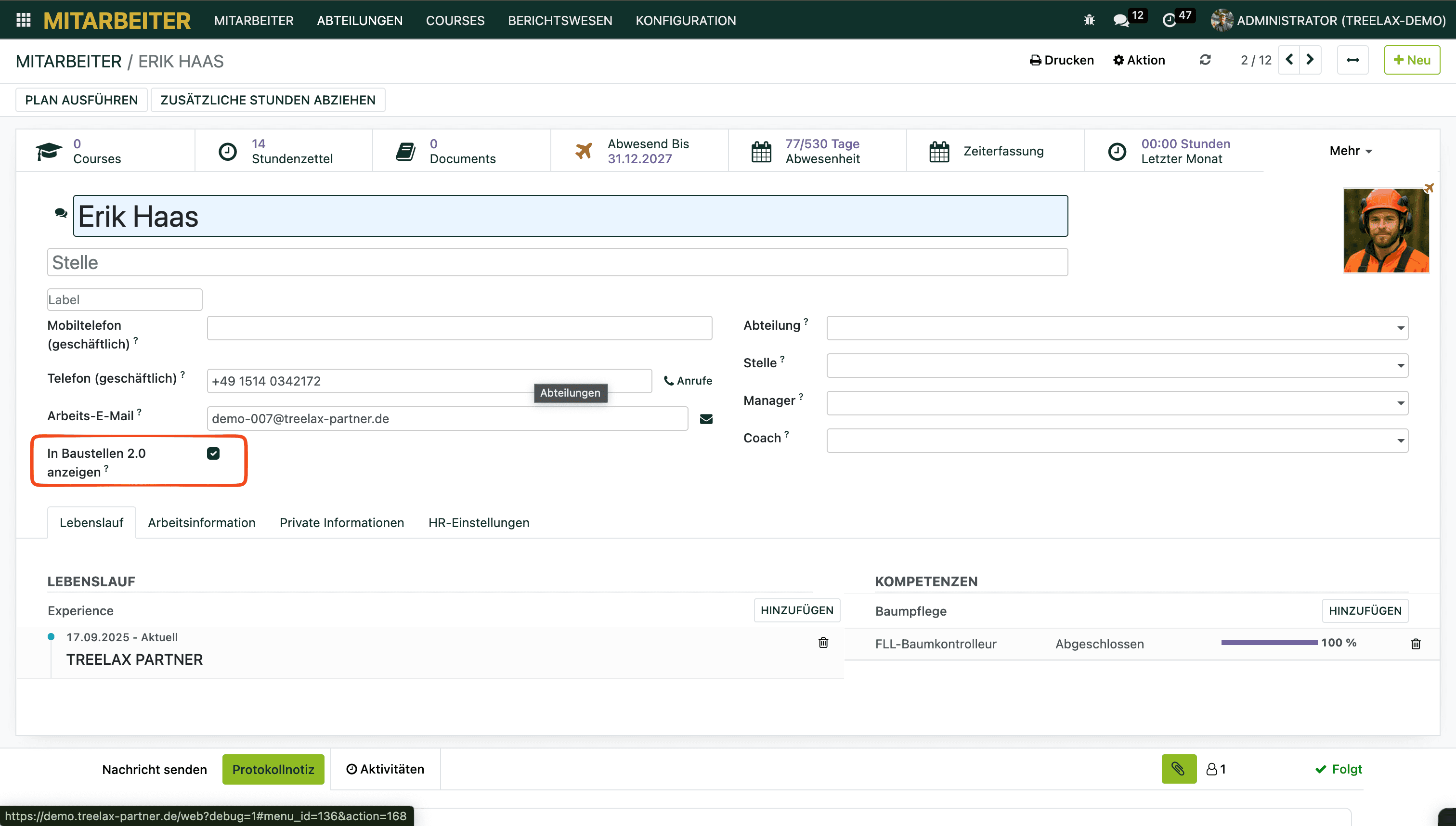 Der Vorarbeiter ist die verantwortliche Person auf der Baustelle. Er hat in der Regel erweiterte Rechte – z.B. die Gefährdungsermittlung durchführen und die Stunden aller auf die Baustelle zugeordneten Mitarbeiter eintragen.