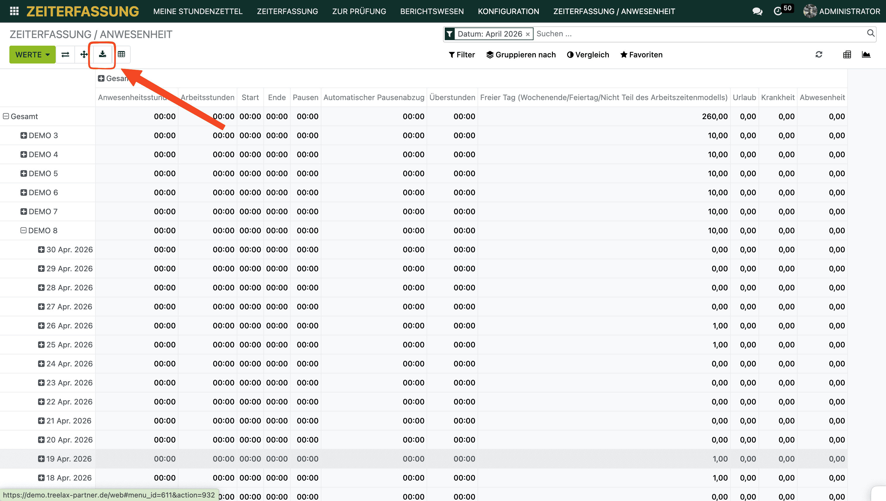Zeiterfassung der Mitarbeiter für den Steuerberater exportieren