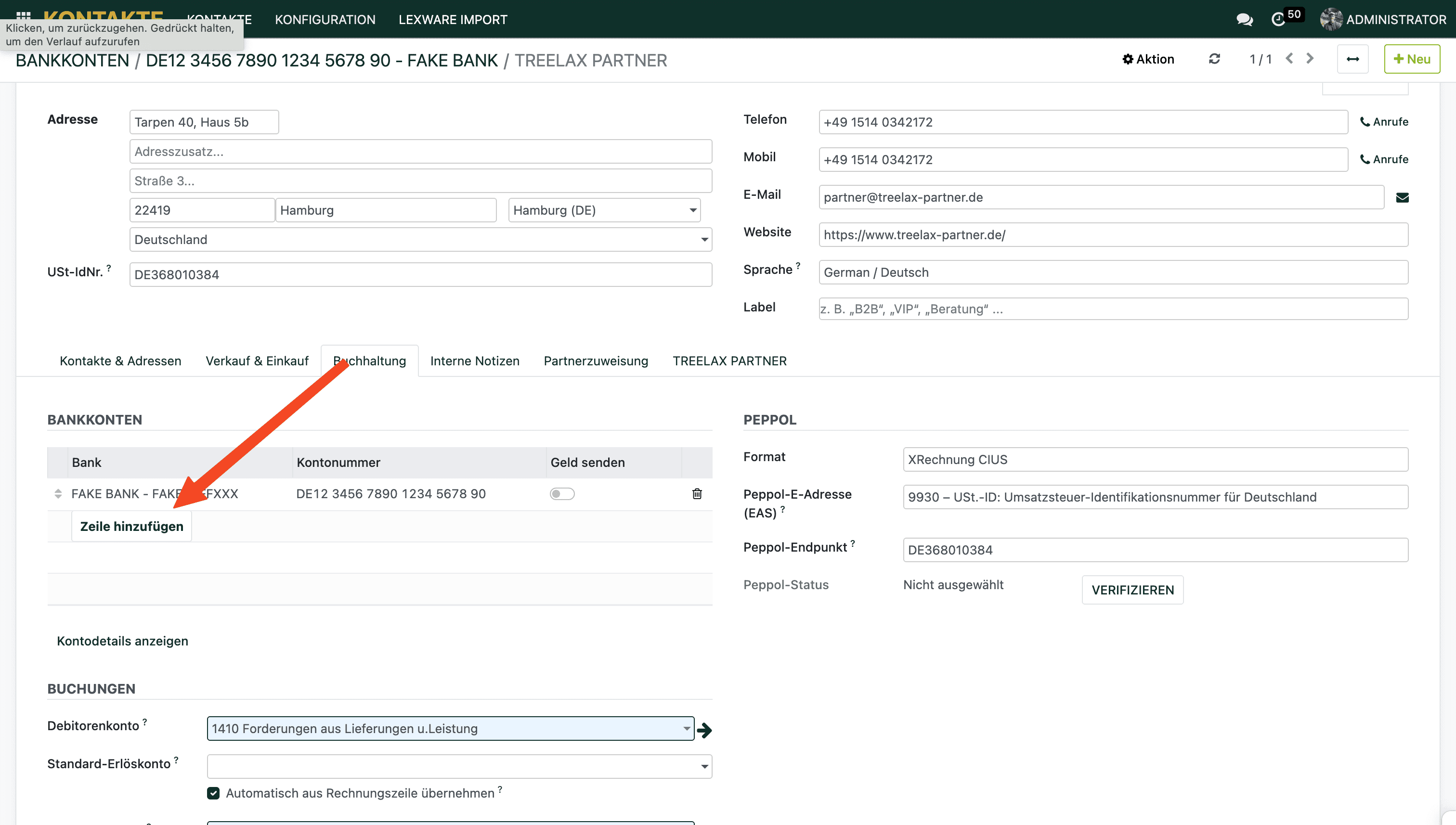 2. Klicke in den Tab Buchhaltung. Hier siehst du alle deine Bankverbindungen