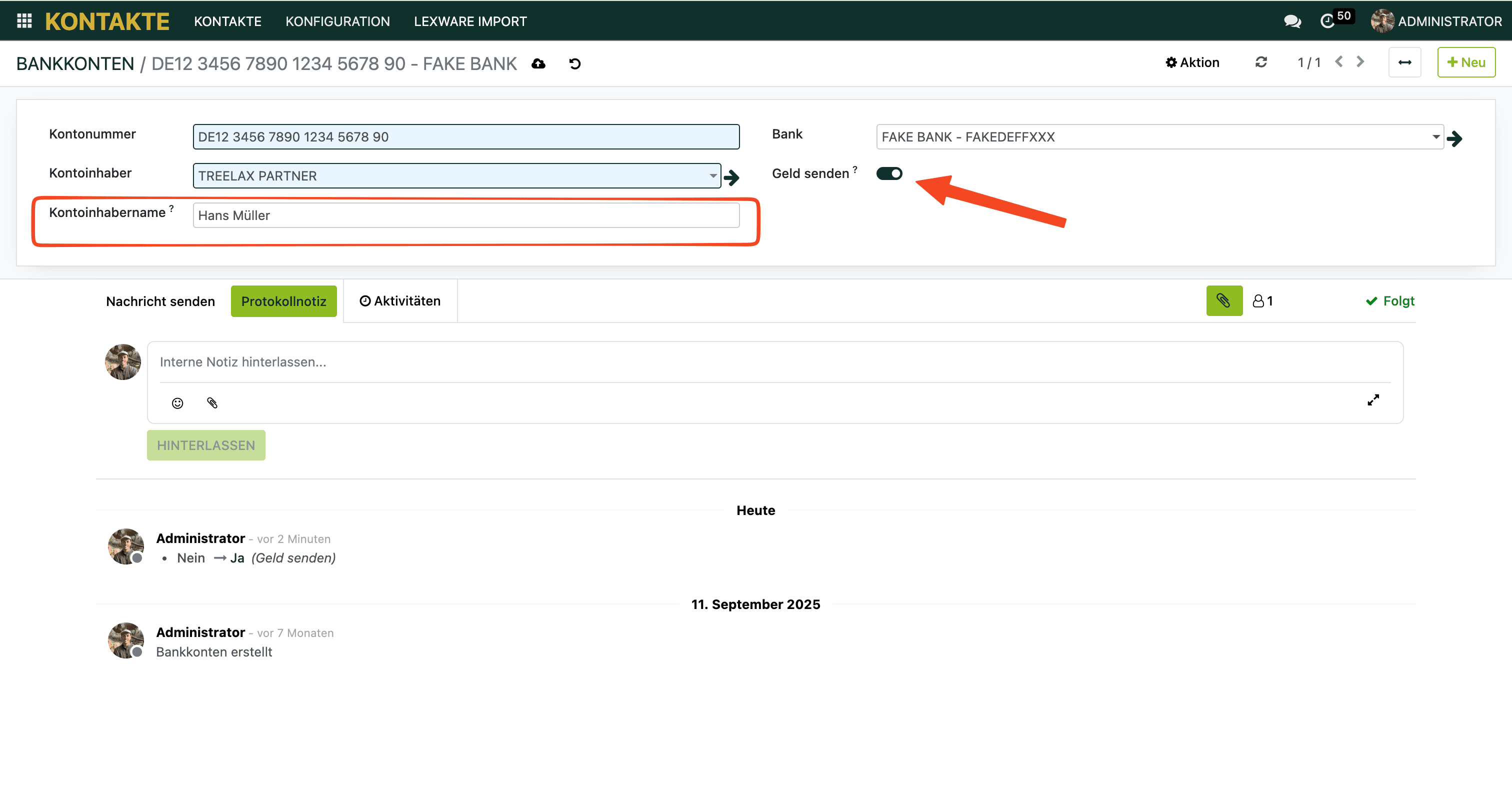 Manche Betriebe haben zwei Bankkonten – z.B. ein Hauptkonto und ein separates Konto für bestimmte Kunden (wie eine Factoringgesellschaft oder ein spezifischer Auftraggeber). Oder du möchtest bei unterschiedlichen Kundengruppen unterschiedliche Bankverbindungen auf der Rechnung ausweisen.