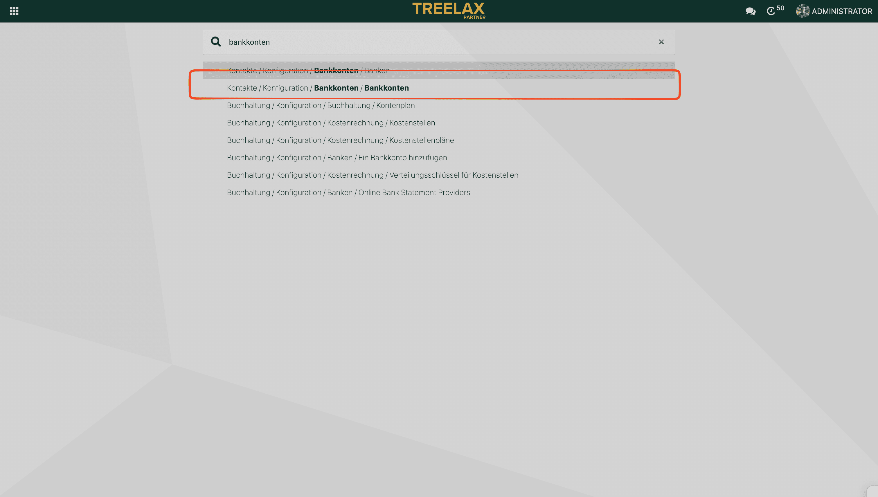2. Gehe ins Such-Menü und suche nach Bankkonten