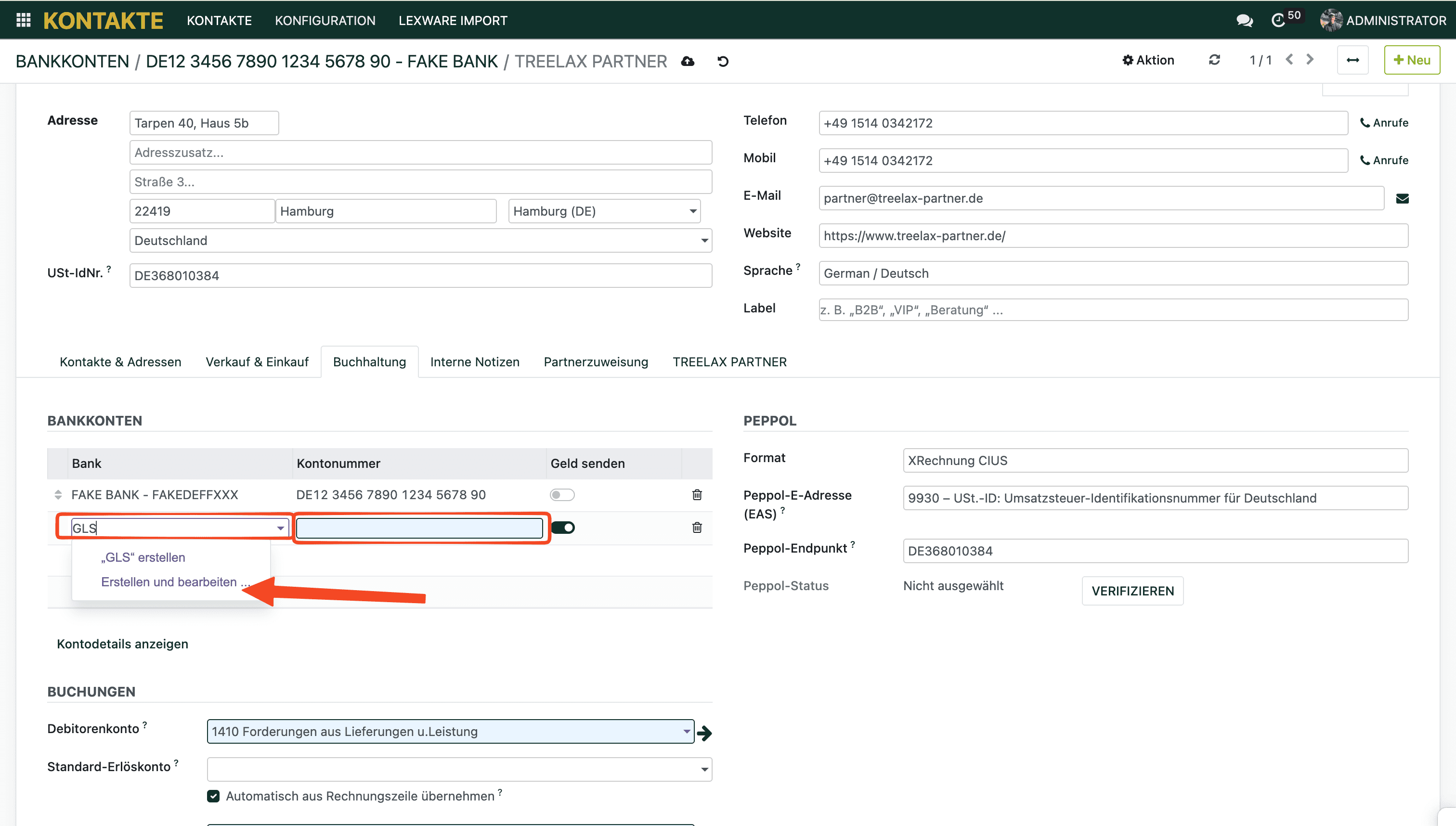 2. Trage den Banknamen ein und klicke “Erstellen und bearbeiten, um IBAN, BIC und Kontoinhaber einzutragen